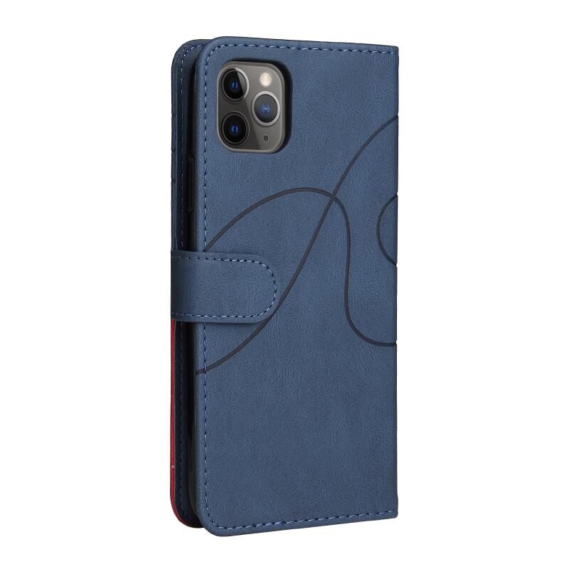 For iPhone 11 Pro Max Dual-color Splicing Horizontal Flip PU Leather Case with Holder & Card Slots & Wallet (Blue)