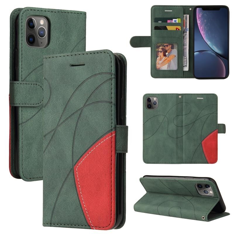 For iPhone 11 Pro Max Dual-color Splicing Horizontal Flip PU Leather Case with Holder & Card Slots & Wallet (Green)