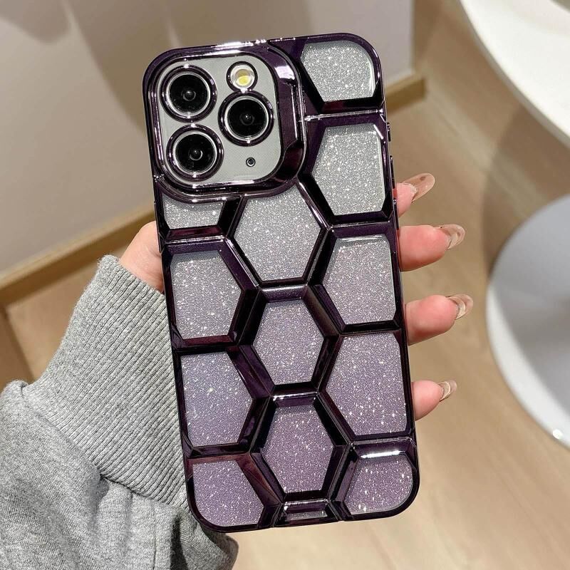 For iPhone 11 Pro Max Electroplating Laser Engraving 3D Honeycomb Glitter TPU Phone Case(Purple)