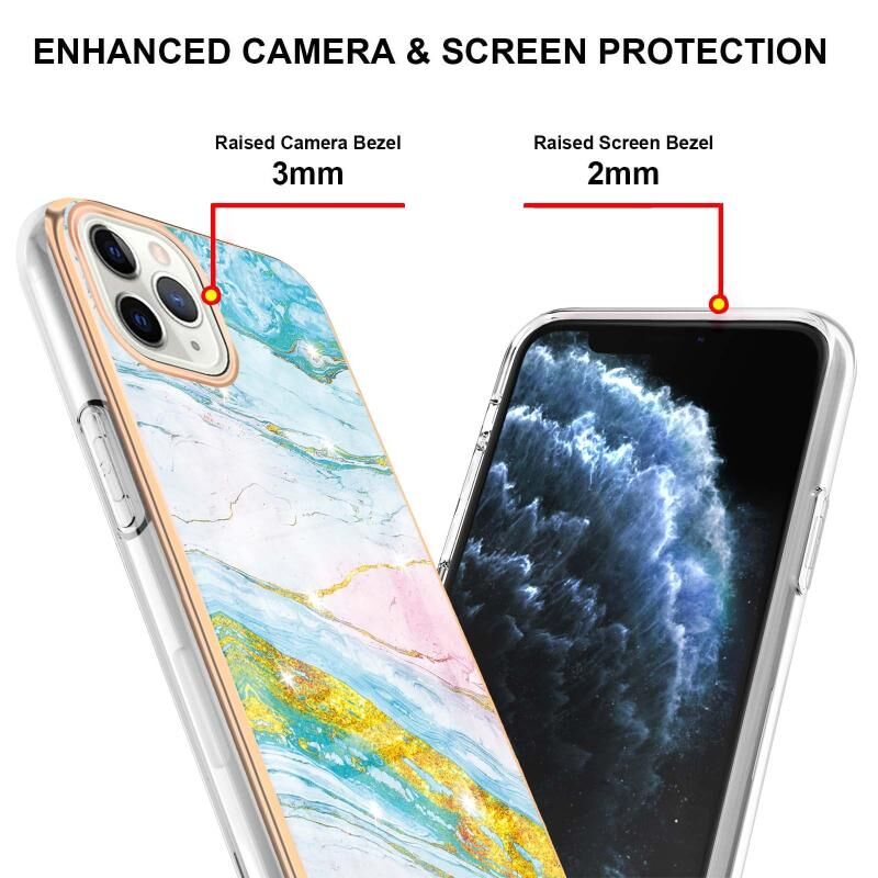 For iPhone 11 Pro Max Electroplating Marble Pattern Dual-side IMD TPU Shockproof Case (Green 004)