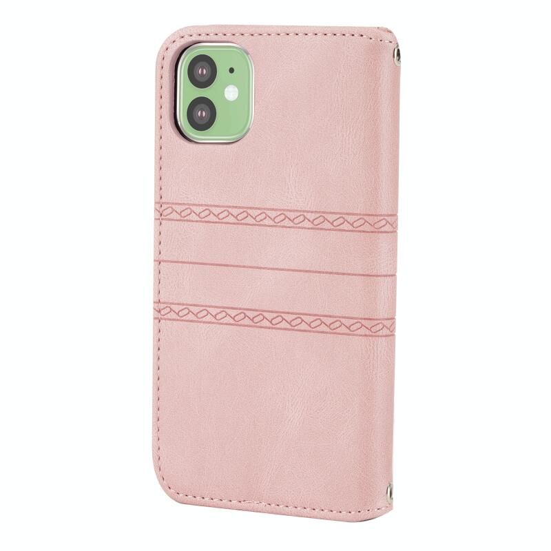 For iPhone 11 Pro Max Embossed Striped Magnetic Buckle PU + TPU Horizontal Flip Leather Case with Holder & Card Slot & Wallet & Photo Frame & Sling (Pink)
