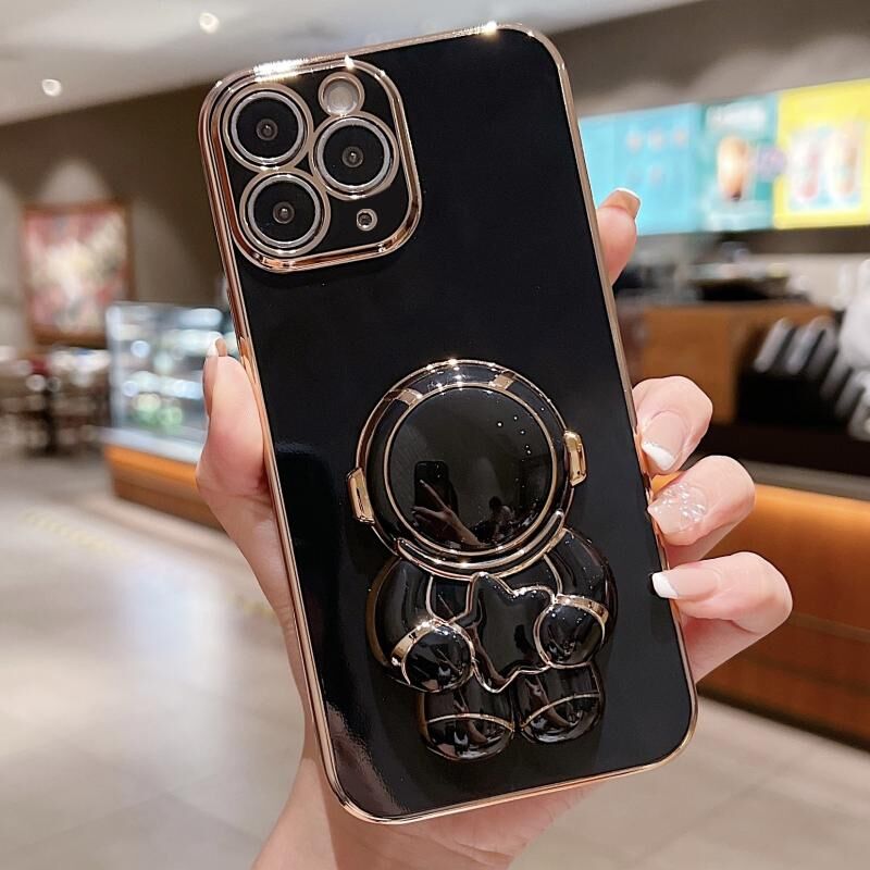 Θήκη κινητού τηλεφώνου για iPhone 11 Pro Max με σχέδιο αστροναύτη και ηλεκτρολυτική επίστρωση "Embrace Stars" (Μαύρο)