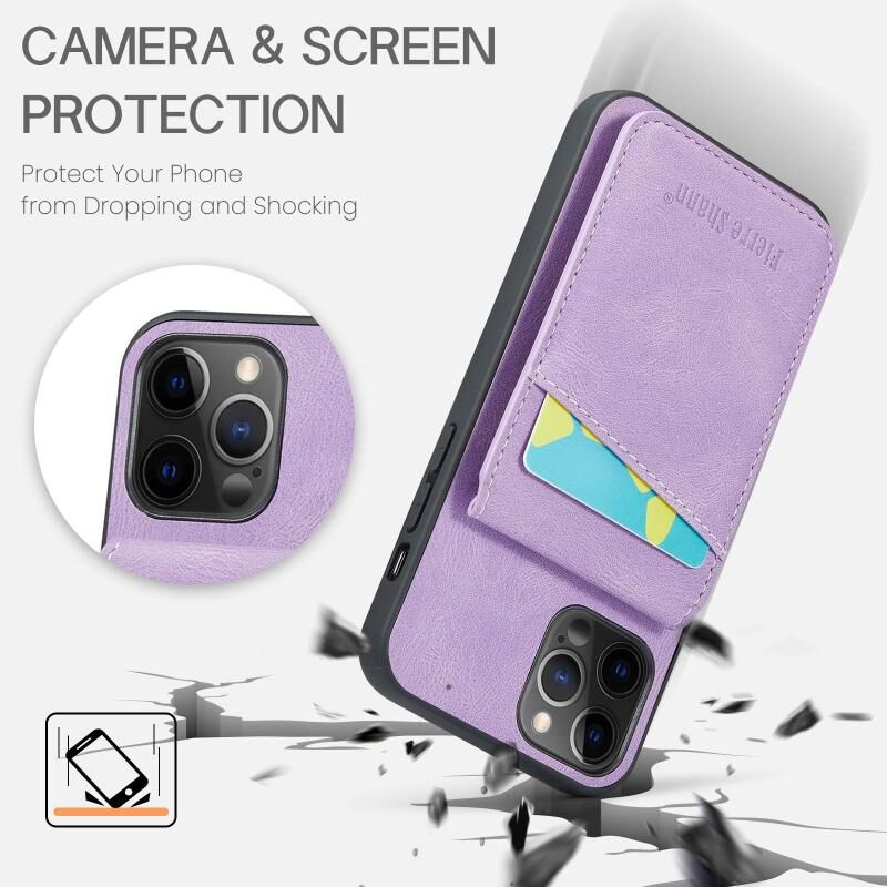 For iPhone 11 Pro Max Fierre Shann Crazy Horse Card Holder Back Cover PU Phone Case(Purple) (FIERRE SHANN)