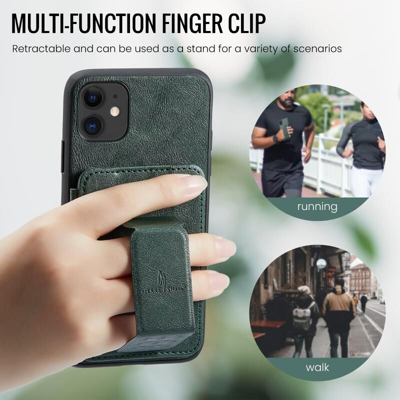 For iPhone 11 Pro Max Fierre Shann Oil Wax Cow Leather Card Holder Back Phone Case(Green) (FIERRE SHANN)
