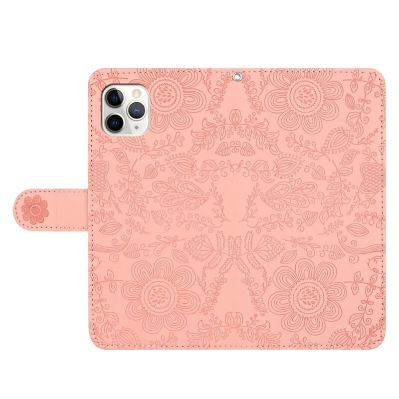 Θήκη τηλεφώνου δερμάτινη με ανάγλυφο floral σχέδιο για iPhone 11 Pro Max (Ροζ)