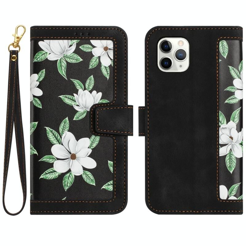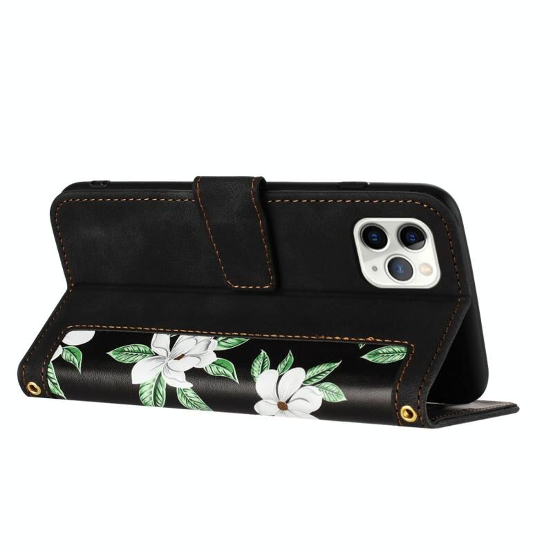 Θήκη τηλεφώνου από δέρμα με λουλουδάτο σχέδιο για iPhone 11 Pro Max με κορδόνι (Ανοιχτό Μπλε)