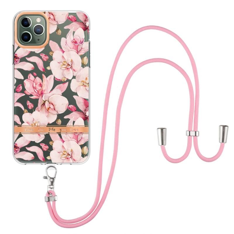Θήκη τηλεφώνου TPU για iPhone 11 Pro Max σειράς Λουλούδια με κορδόνι (Πράσινη Γαρδένια)