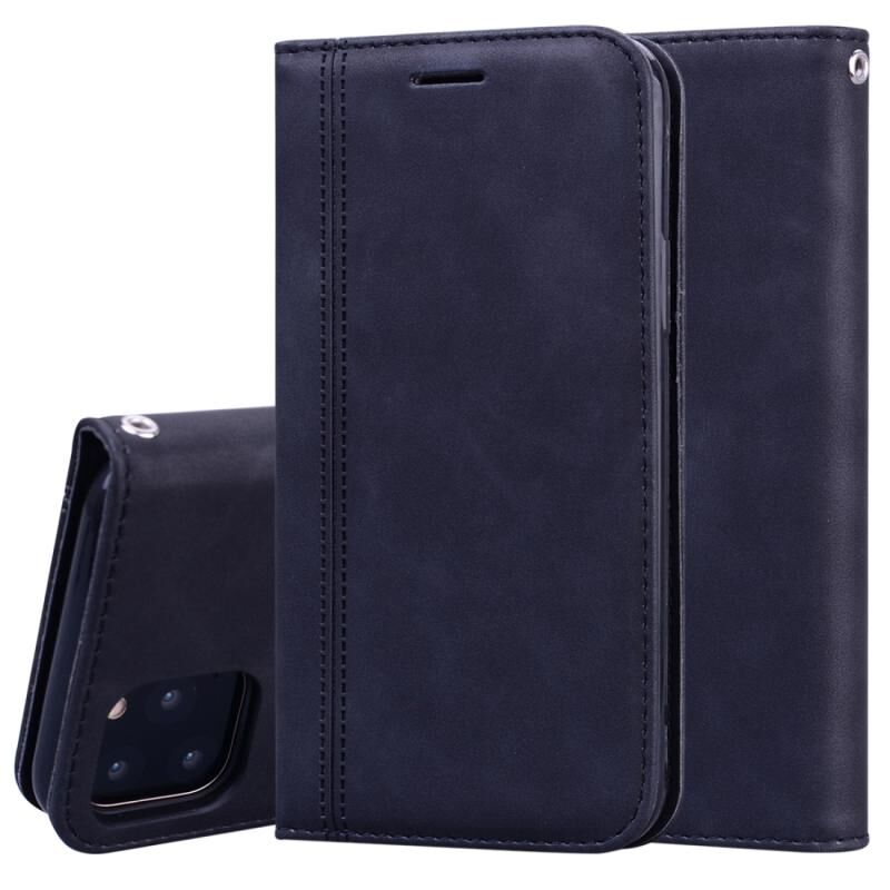 For iPhone 11 Pro Max Frosted Business Magnetic Horizontal Flip PU Leather Case with Holder & Card Slot & Lanyard(Black)