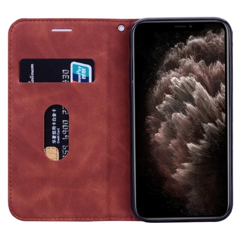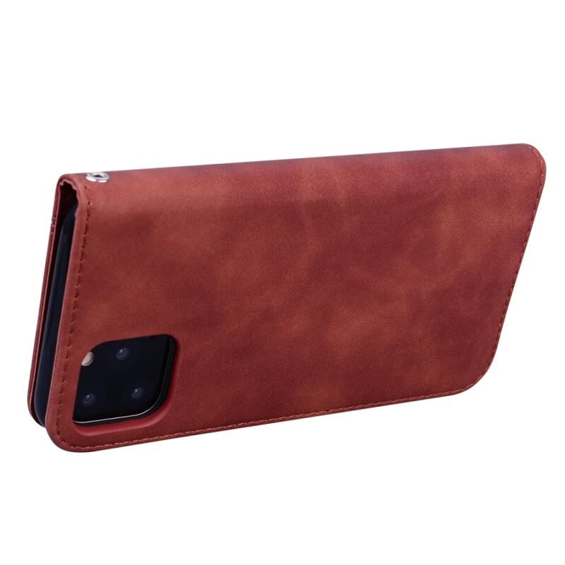 For iPhone 11 Pro Max Frosted Business Magnetic Horizontal Flip PU Leather Case with Holder & Card Slot & Lanyard(Brown)