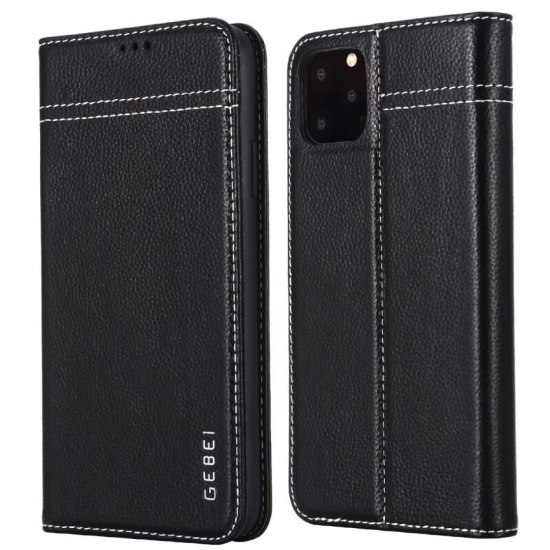 For iPhone 11 Pro Max GEBEI Top-grain Leather Horizontal Flip Protective Case with Holder & Card Slots(Black) (GEBEI)