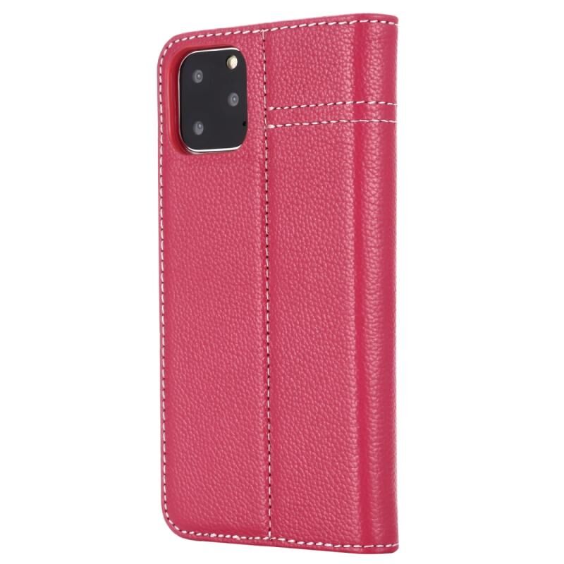 For iPhone 11 Pro Max GEBEI Top-grain Leather Horizontal Flip Protective Case with Holder & Card Slots(Rose Red) (GEBEI)