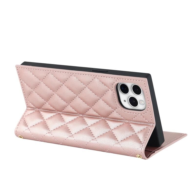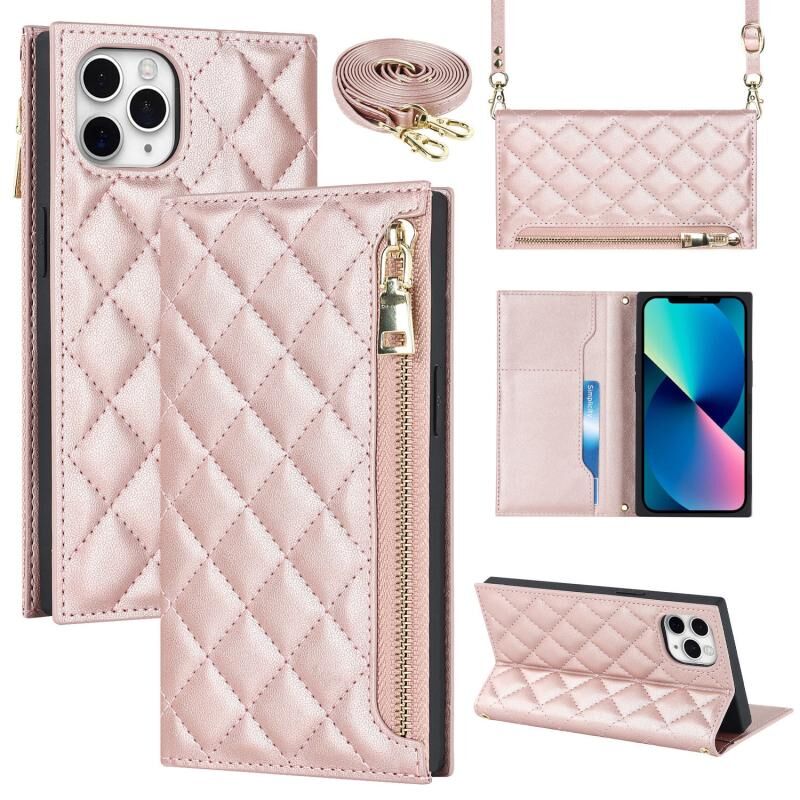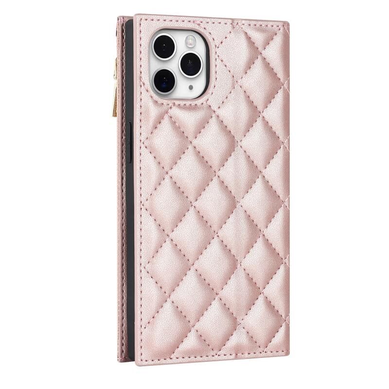 Θήκη τηλεφώνου δερμάτινη με φερμουάρ και λουρί με υφή πλέγματος για iPhone 11 Pro Max (Χρυσορόδινο)