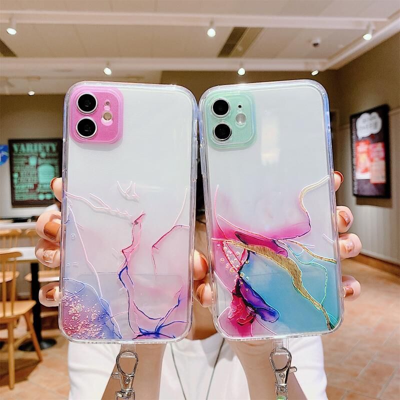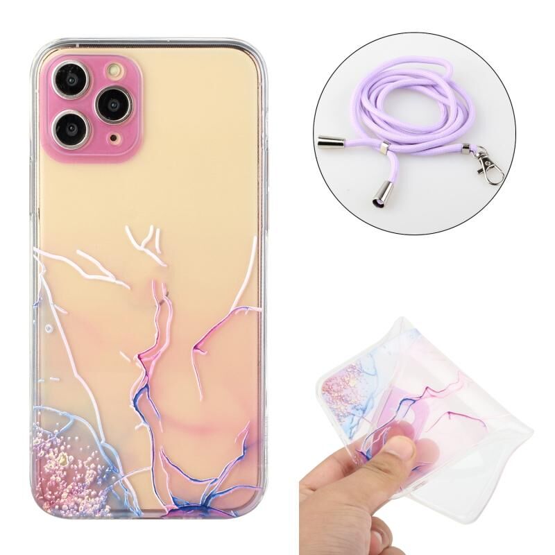 Θήκη προστασίας για iPhone 11 Pro Max, από TPU με σχέδιο κοίλου μαρμάρου, ανθεκτική σε κρούσεις, με κορδόνι λαιμού (Γκρι)