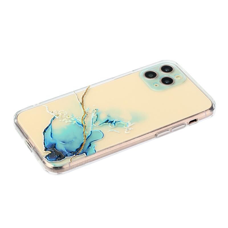 Θήκη προστασίας TPU με κοίλο σχέδιο μαρμάρου για iPhone 11 Pro Max, με ευθείες άκρες και λεπτές οπές (Κίτρινο-Μπλε)