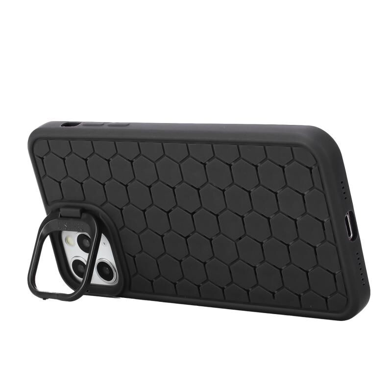 For iPhone 11 Pro Max Honeycomb Radiating Holder TPU Phone Case with Lanyard(Black)