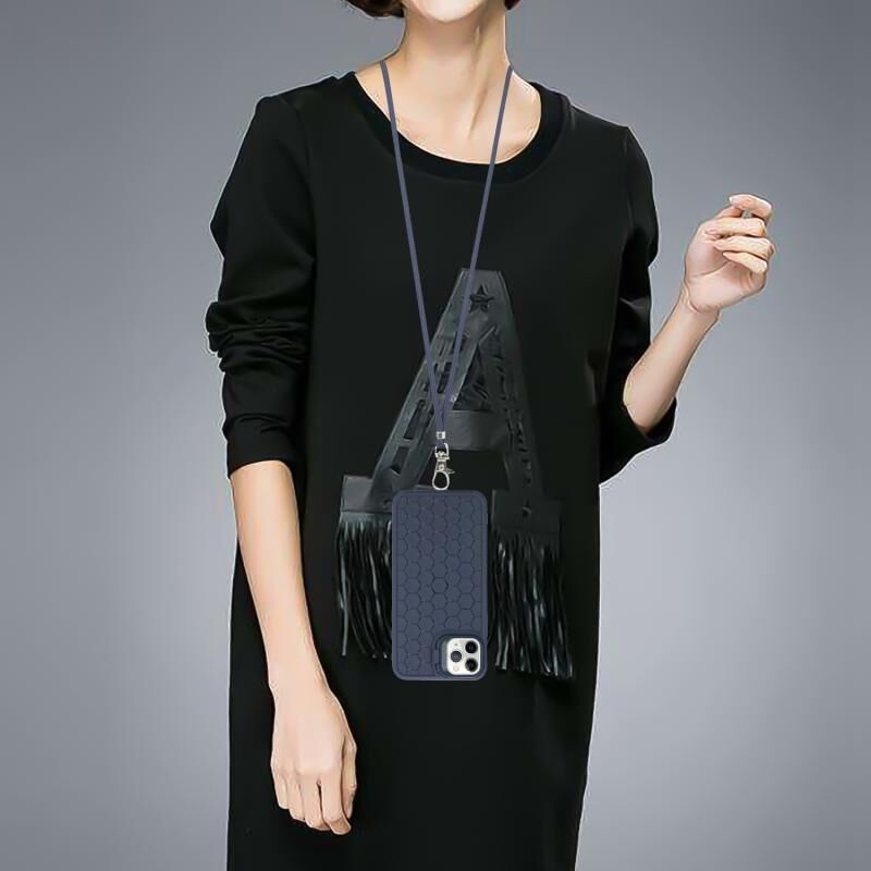 For iPhone 11 Pro Max Honeycomb Radiating Holder TPU Phone Case with Lanyard(Blue)