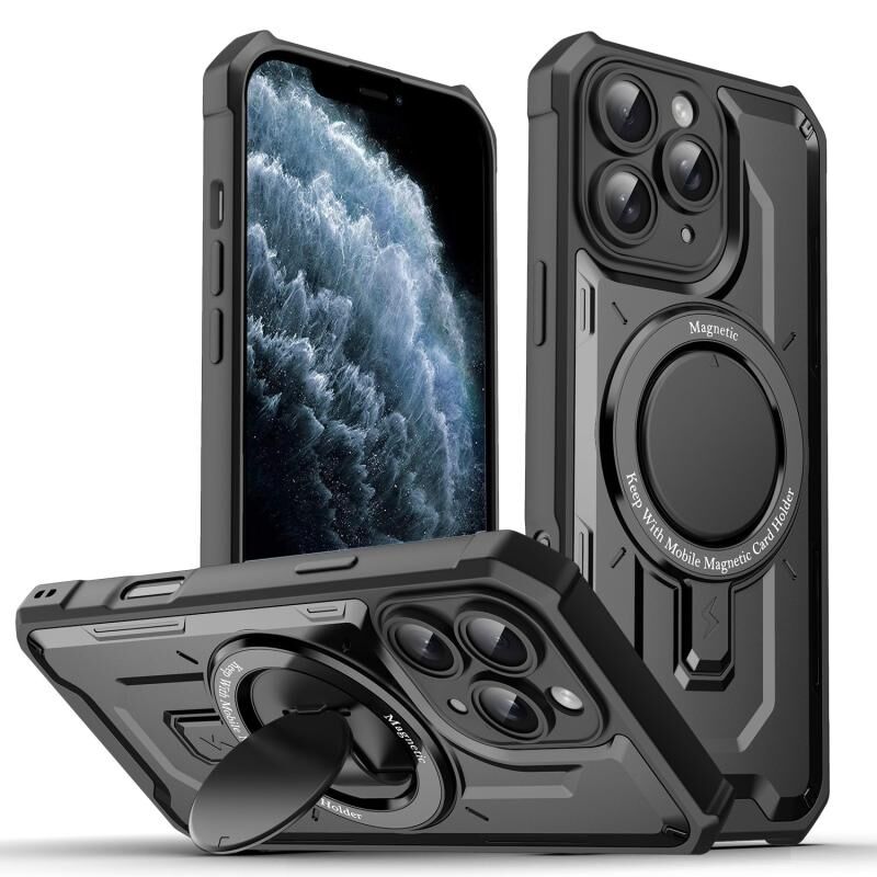 For iPhone 11 Pro Max Invisible Bracket MagSafe Magnetic Phone Case(Black)