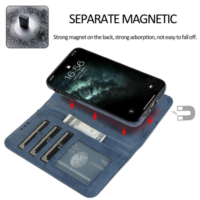 4. Multifunctional design, card slots, wallet, holder, detachable magnetic protective back cover.