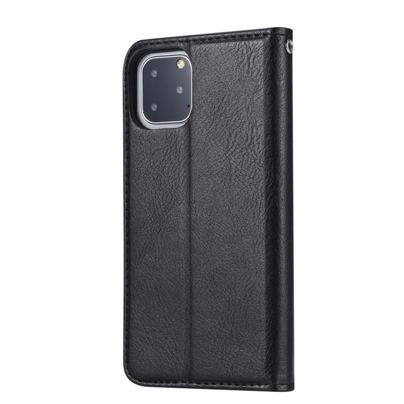 Θήκη δέρματος οριζόντιας αναδίπλωσης για iPhone 11 Pro Max με υφή ζυμαριού, με κορνίζα φωτογραφιών & βάση στήριξης & θήκες καρτών & πορτοφόλι (Μαύρο)