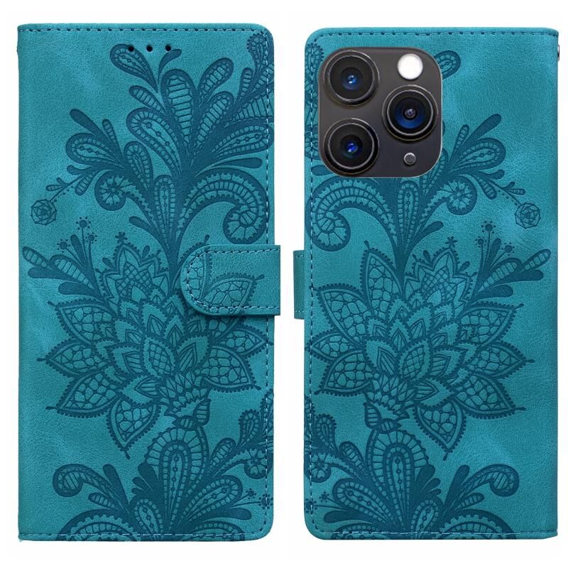 Θήκη τηλεφώνου για iPhone 11 Pro Max με δαντέλα, λουλουδάτο ανάγλυφο, μαγνητικό κούμπωμα και λουρί καρπού (Πράσινο)