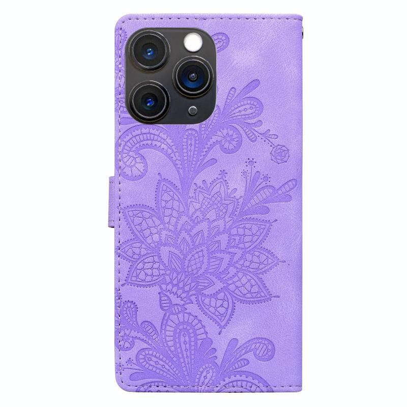 Θήκη τηλεφώνου για iPhone 11 Pro Max με δαντέλα, λουλουδάτο ανάγλυφο, μαγνητικό κούμπωμα και λουρί καρπού (Πράσινο)