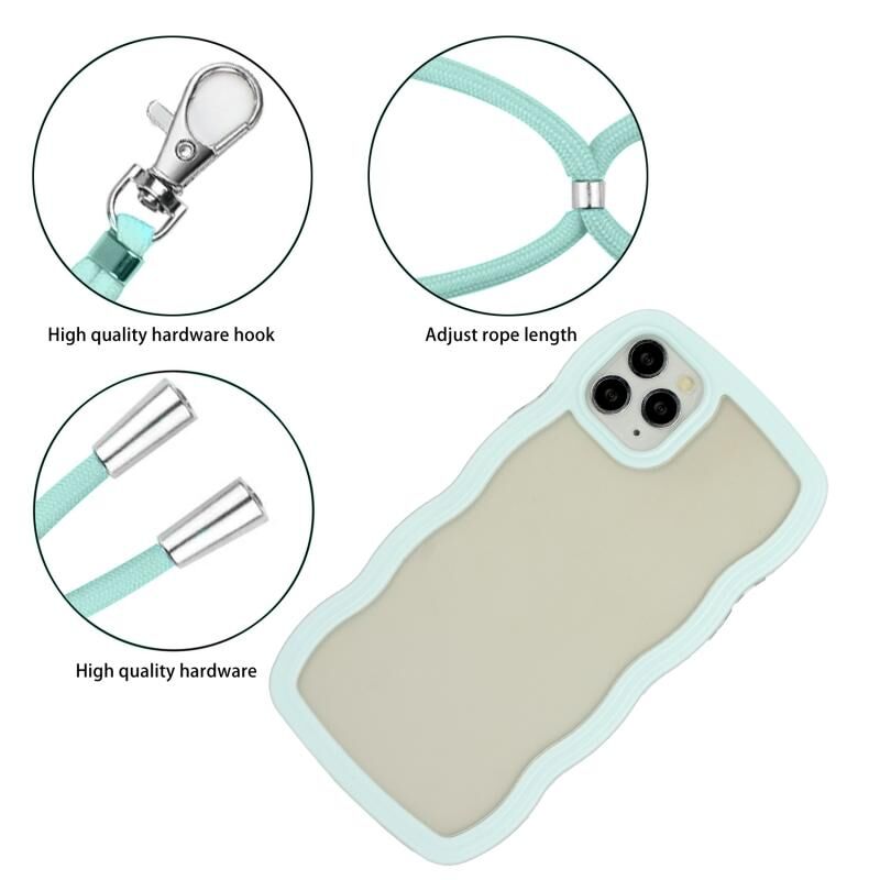 Θήκη κινητού για iPhone 11 Pro Max με κορδόνι, διαφανές TPU και PC σε χρώμα καραμέλας (Λευκό)