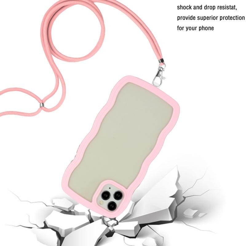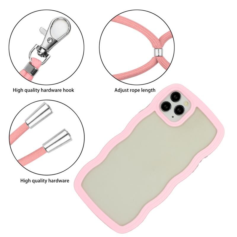 For iPhone 11 Pro Max Lanyard Candy Color Wave TPU Clear PC Phone Case (Pink)