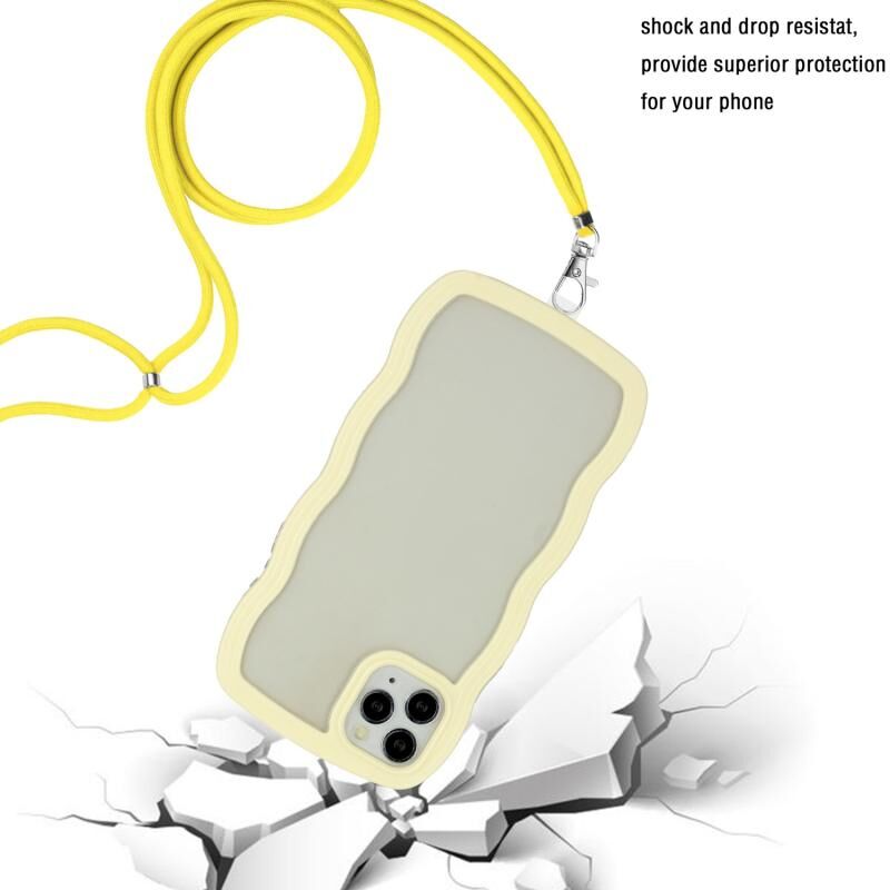 For iPhone 11 Pro Max Lanyard Candy Color Wave TPU Clear PC Phone Case (Yellow)