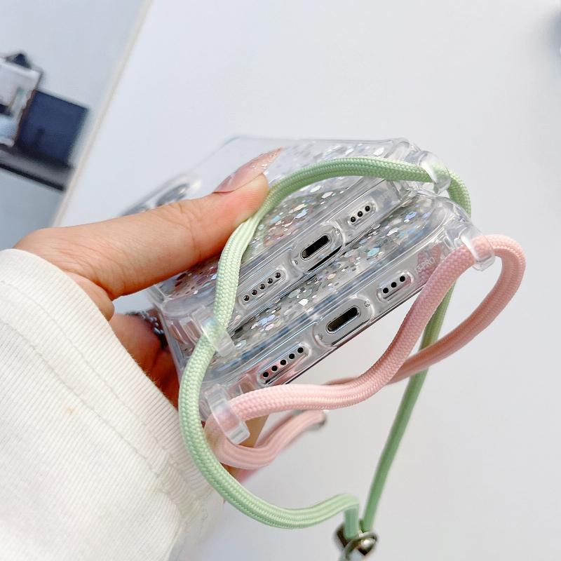 For iPhone 11 Pro Max Lanyard Glitter Epoxy Clear Phone Case (Red)