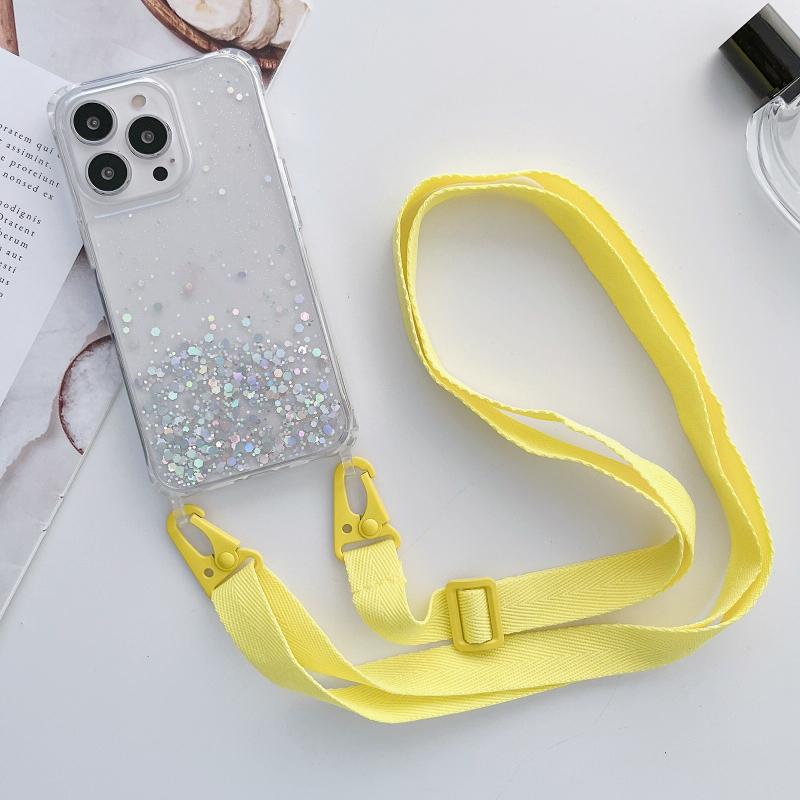 For iPhone 11 Pro Max Lanyard Glitter Epoxy Clear Phone Case (Yellow)