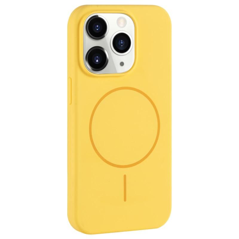 For iPhone 11 Pro Max Large Hole Camera MagSafe Liquid Silicone Full Coverage Phone Case(Creamy)