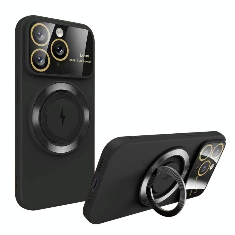 For iPhone 11 Pro Max Large Window MagSafe Magnetic Holder Phone Case(Black)