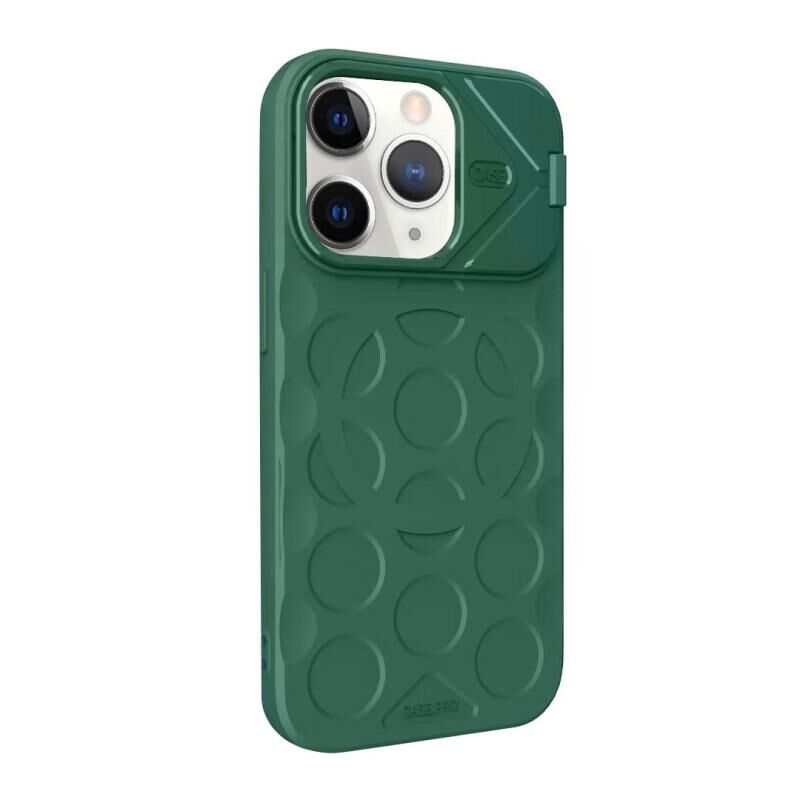 For iPhone 11 Pro Max Lens Frame Holder MagSafe PC Hybrid TPU Phone Case(Deep Green)