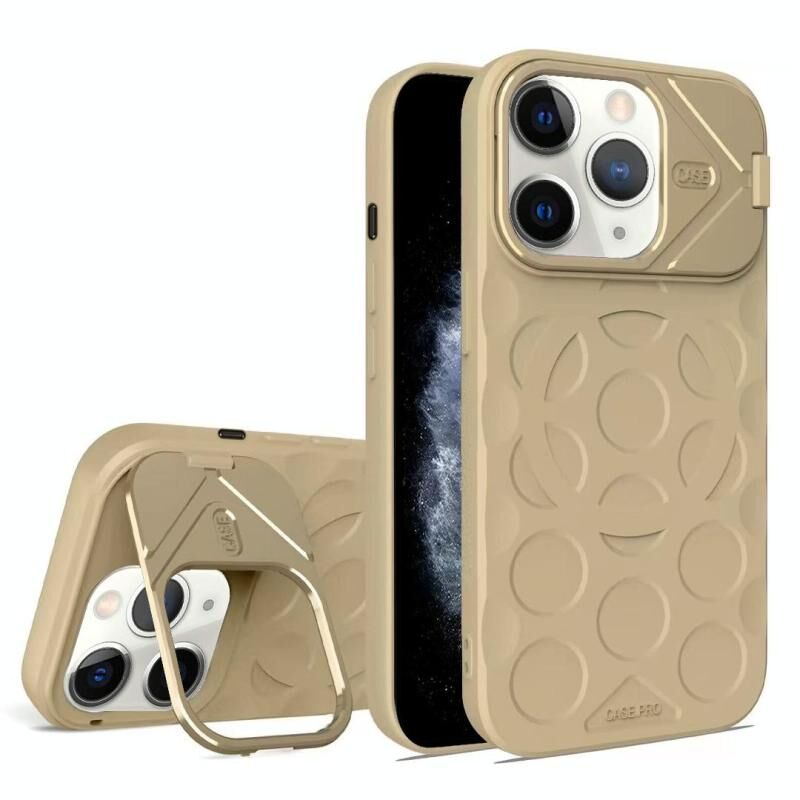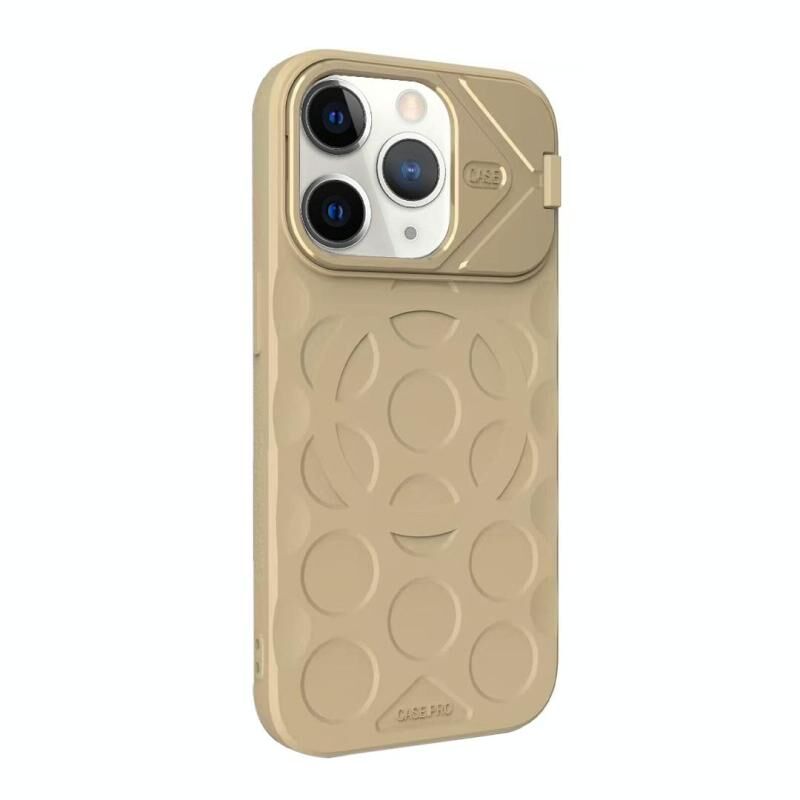 For iPhone 11 Pro Max Lens Frame Holder MagSafe PC Hybrid TPU Phone Case(Desert Gold)