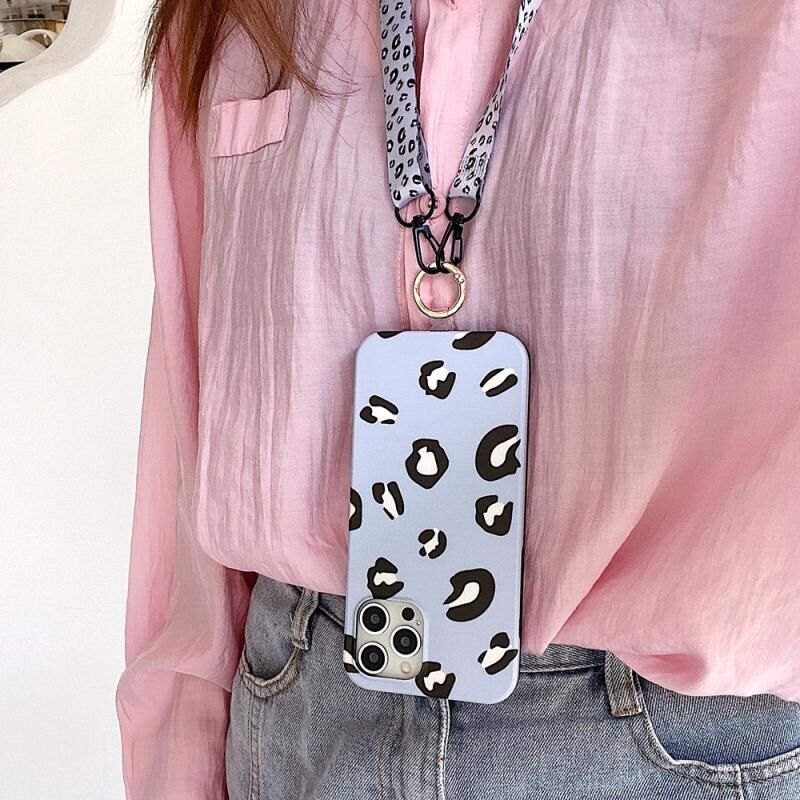 Θήκη τηλεφώνου για iPhone 11 Pro Max με σχέδιο λεοπάρδαλης από TPU, ευθεία άκρη, με κορδόνι (Μπλε-Μωβ)