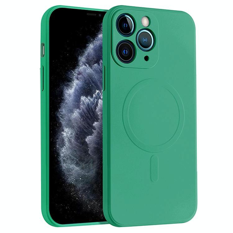 For iPhone 11 Pro Max Liquid Silicone Full Coverage Magsafe Phone Case (Dark Green)