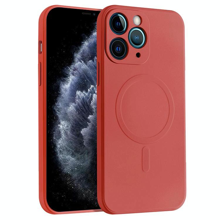 For iPhone 11 Pro Max Liquid Silicone Full Coverage Magsafe Phone Case (Dark Red)