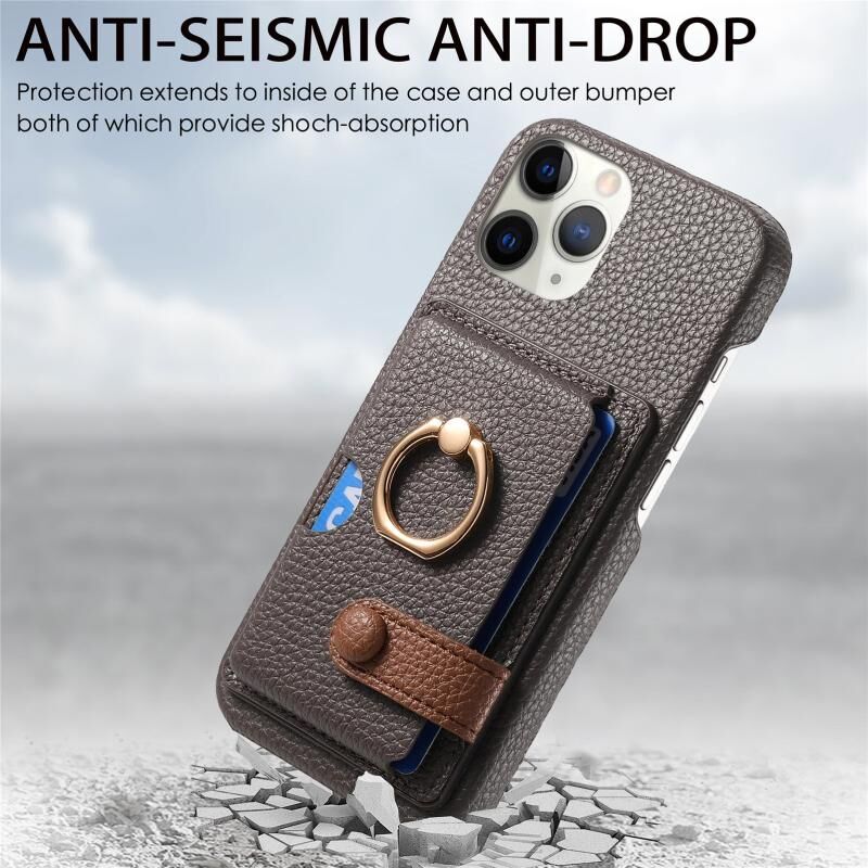 Θήκη κινητού τηλεφώνου για iPhone 11 Pro Max από δέρμα Litchi με λεπτή άκρη και θήκη για κάρτες στην πλάτη (Καφέ)
