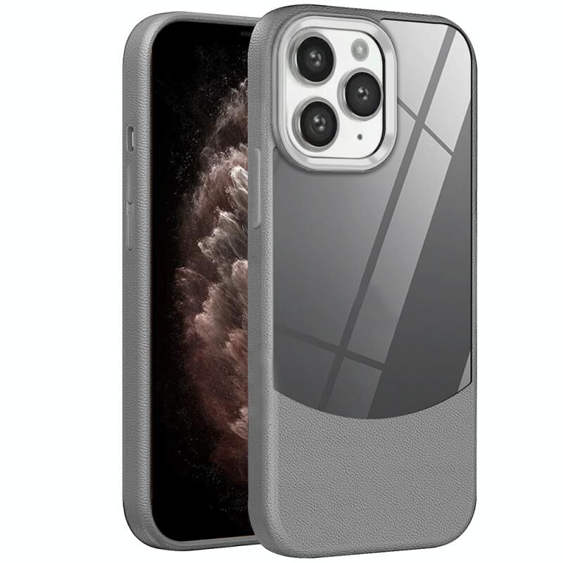 Θήκη κινητού τηλεφώνου υβριδική από TPU και ακρυλικό με υφή δέρματος για iPhone 11 Pro Max (Γκρι)