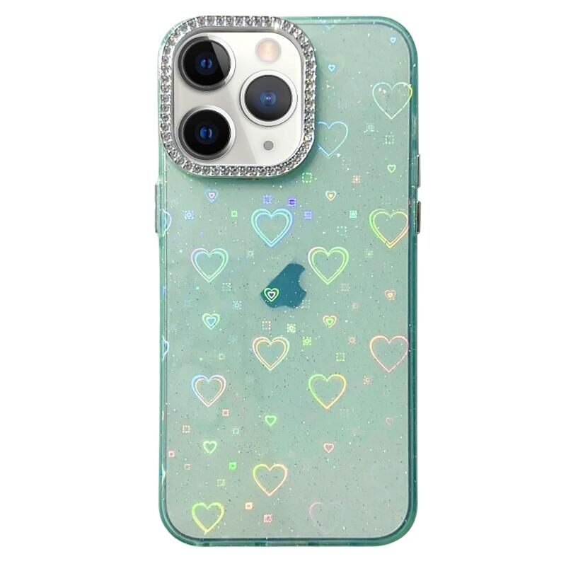 Θήκη τηλεφώνου IMD Acrylic για iPhone 11 Pro Max με σχέδιο καρδιάς και διαμαντένια στεφάνη φακού (Ροζ)