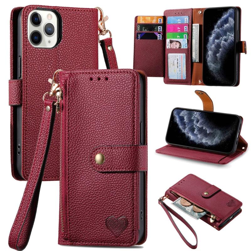 For iPhone 11 Pro Max Love Zipper Lanyard Leather Phone Case(Red)