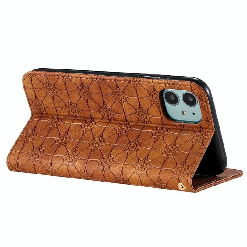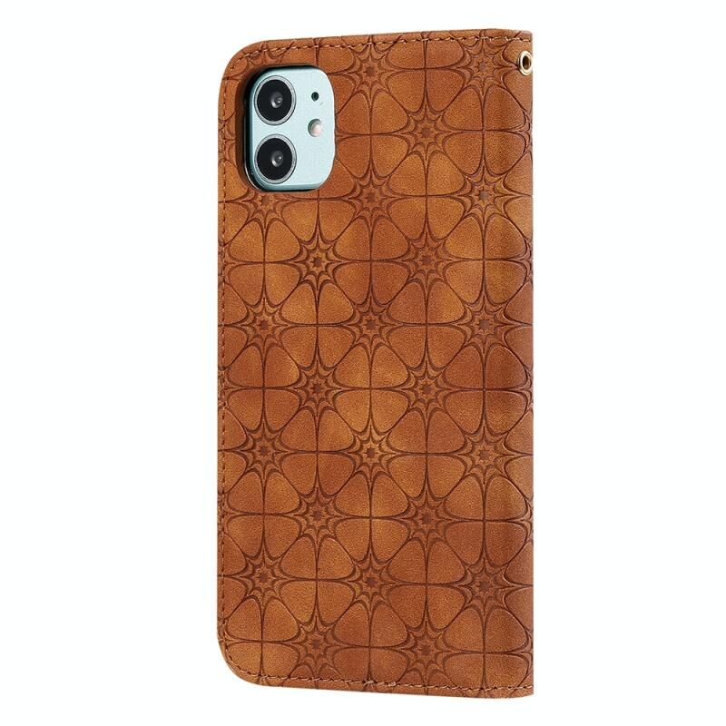 For iPhone 11 Pro Max Lucky Flowers Embossing Pattern Magnetic Horizontal Flip Leather Case with Holder & Card Slots(Brown)