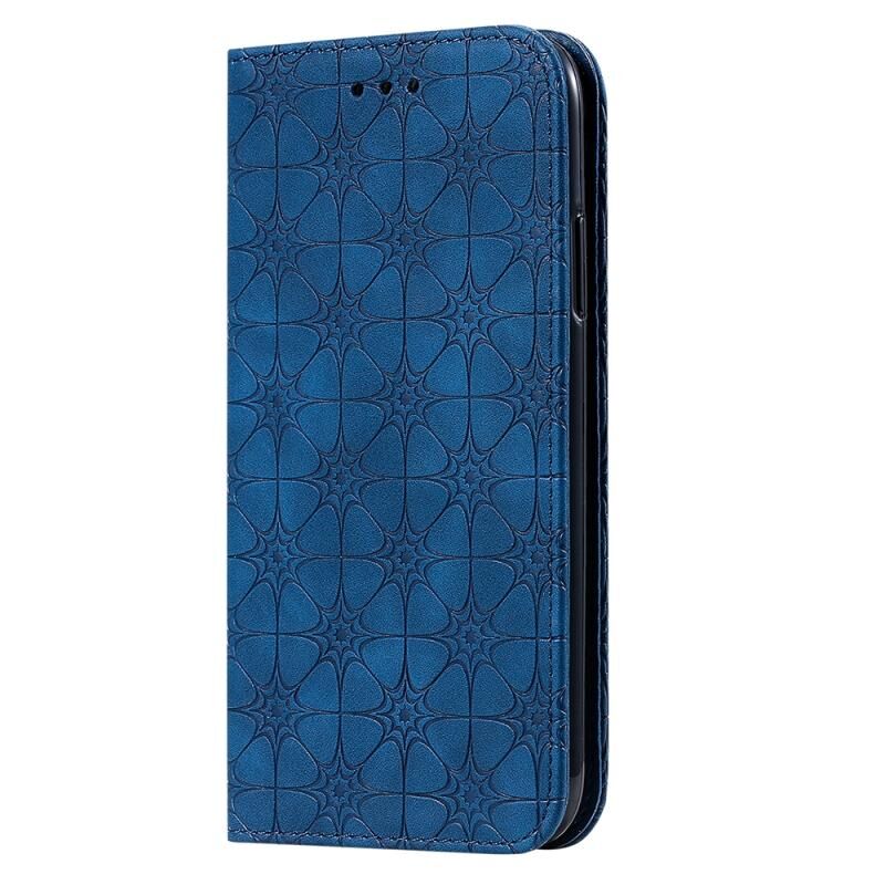 For iPhone 11 Pro Max Lucky Flowers Embossing Pattern Magnetic Horizontal Flip Leather Case with Holder & Card Slots(Dark Blue)