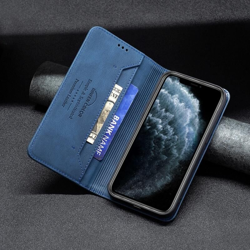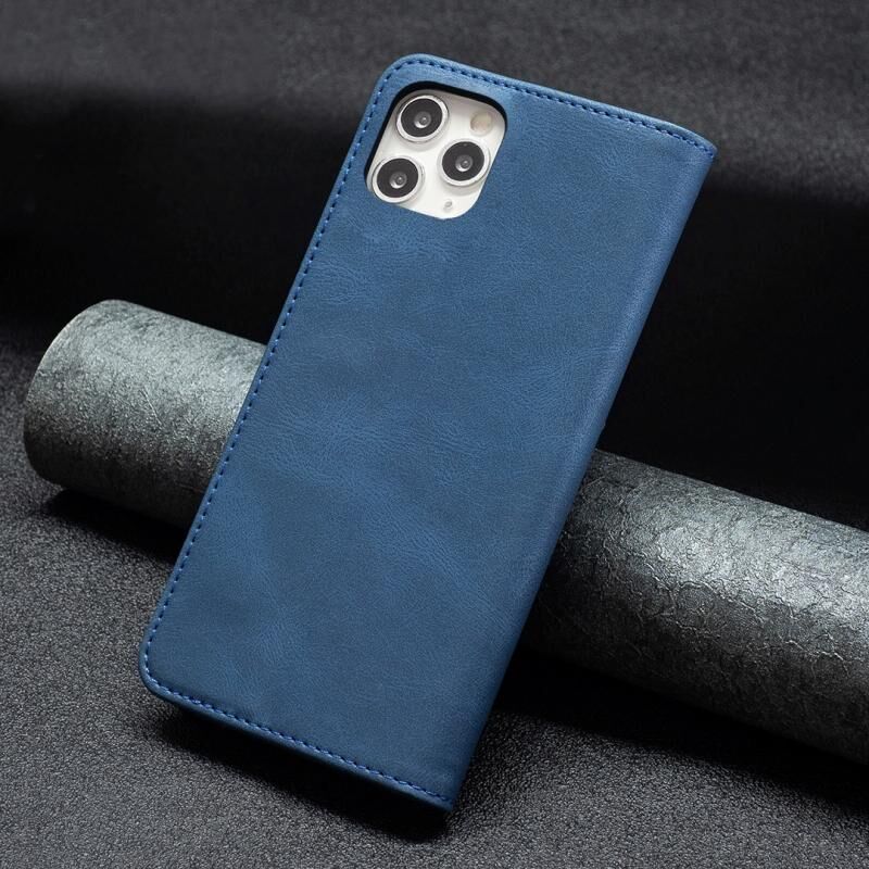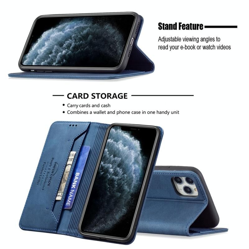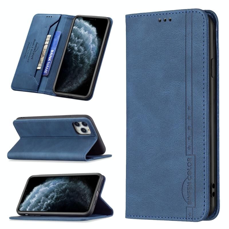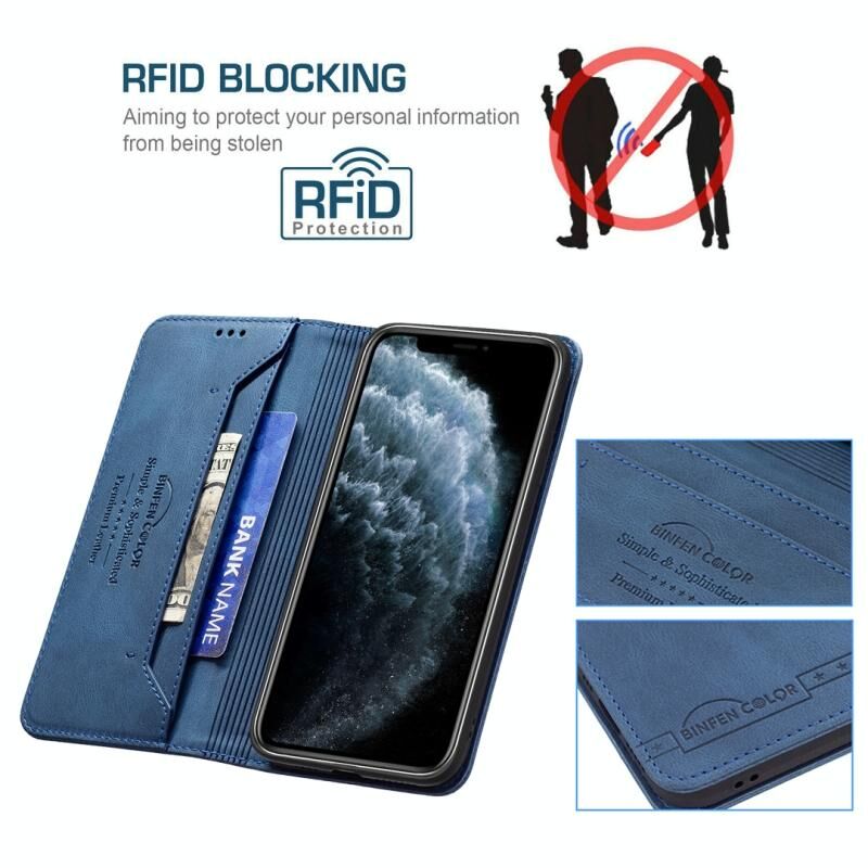 For iPhone 11 Pro Max Magnetic RFID Blocking Anti-Theft Leather Case with Holder & Card Slots & Wallet (Blue)