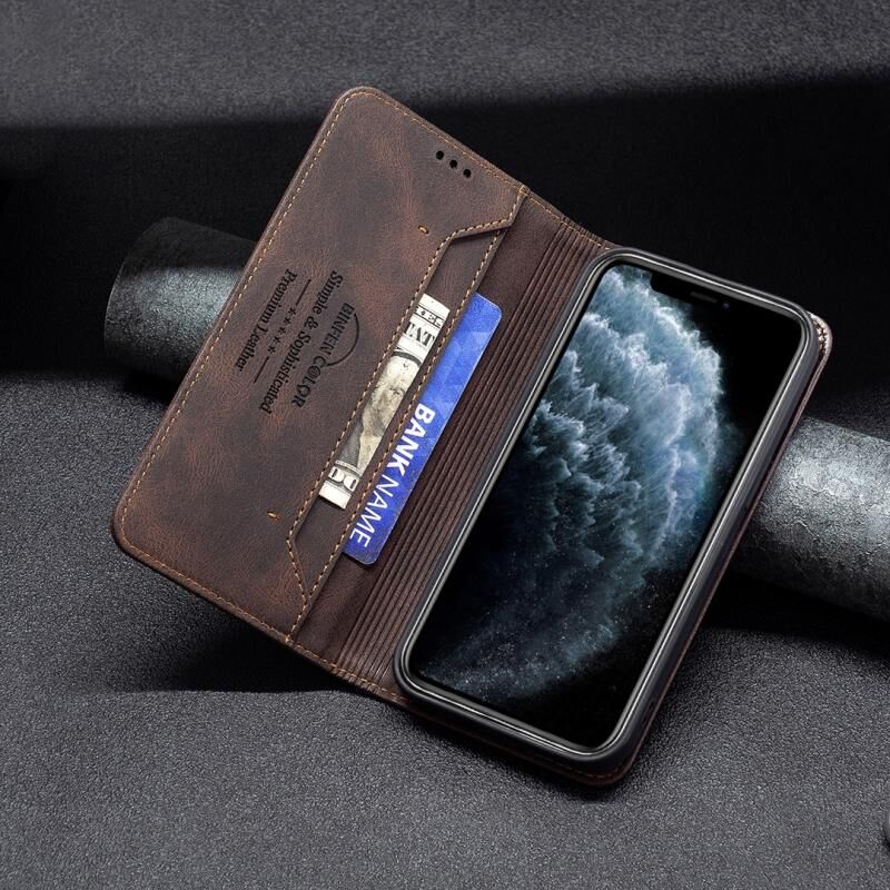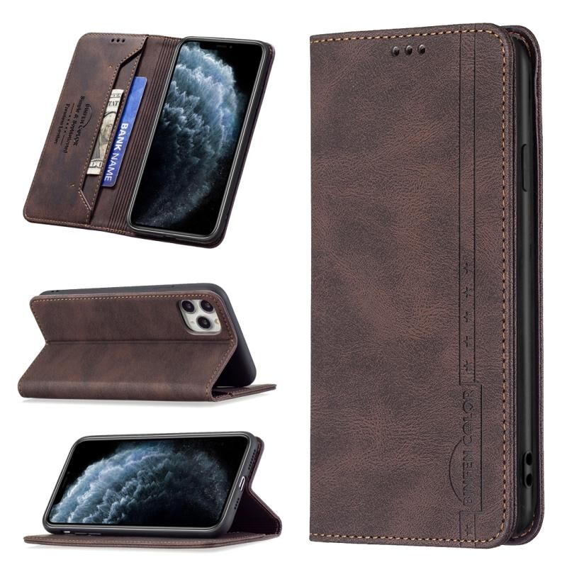 For iPhone 11 Pro Max Magnetic RFID Blocking Anti-Theft Leather Case with Holder & Card Slots & Wallet (Brown)