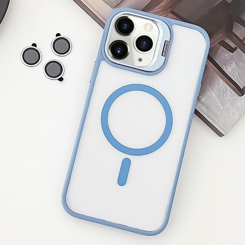 For iPhone 11 Pro Max MagSafe Acrylic Hybrid TPU Holder Phone Case with Lens film(Light Blue)