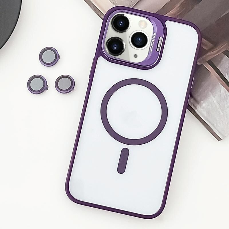 For iPhone 11 Pro Max MagSafe Acrylic Hybrid TPU Holder Phone Case with Lens film(Purple)
