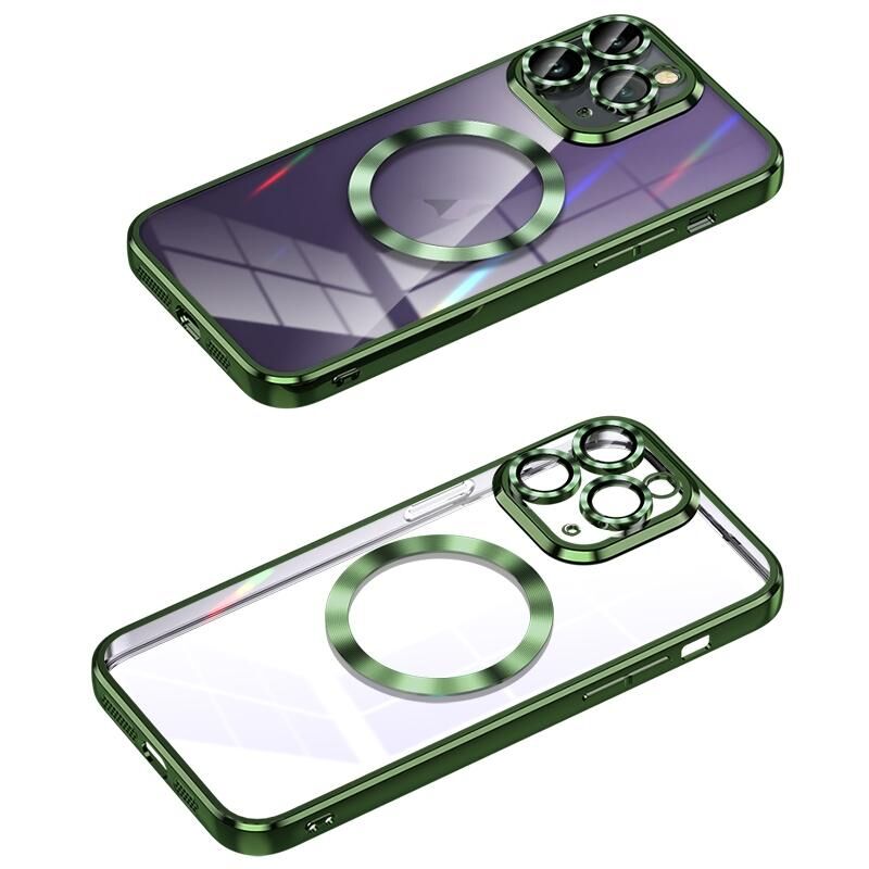 For iPhone 11 Pro Max MagSafe CD Texture Metal Lens Frame Full Coverage Phone Case(Green)