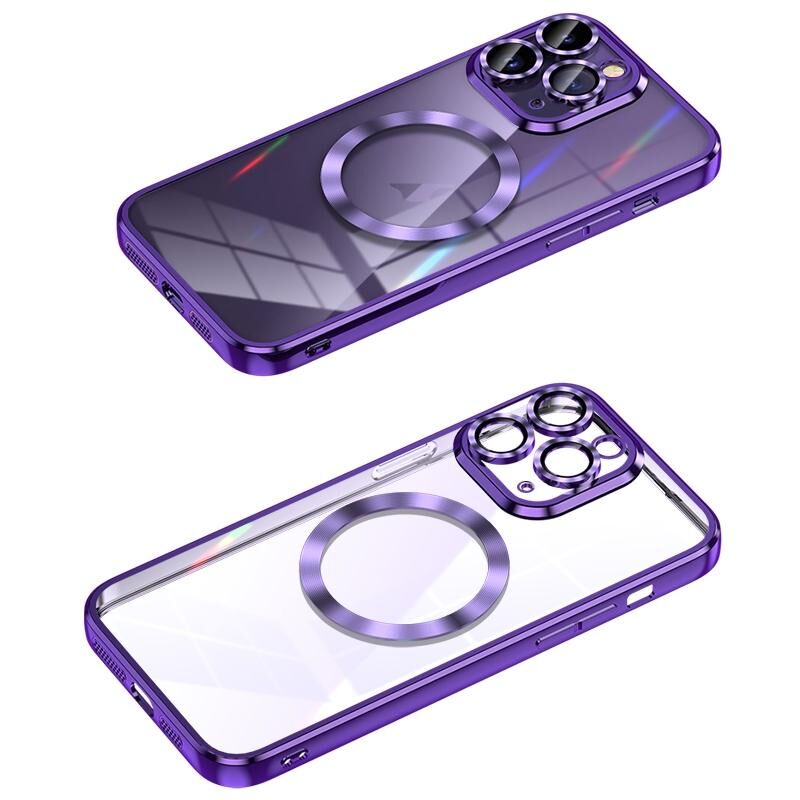For iPhone 11 Pro Max MagSafe CD Texture Metal Lens Frame Full Coverage Phone Case(Purple)