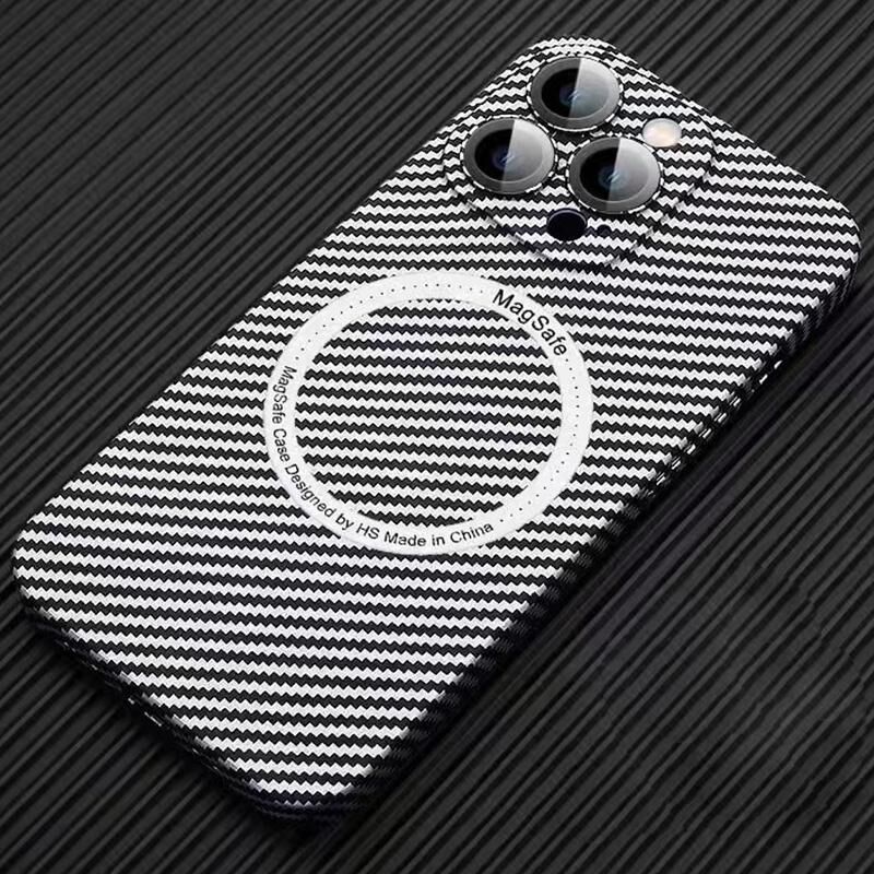 For iPhone 11 Pro Max MagSafe Magnetic PC Carbon Fiber Phone Case with Lens Film(Silver White)